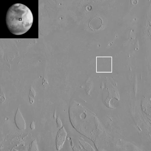 orbiter photomosaic 1:64-scale map. The white box indicates the