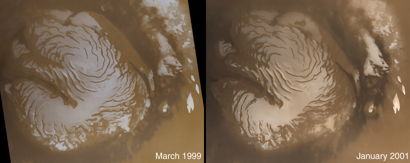 one Mars year later, on January 26, 2001. The light-toned surfaces are residual