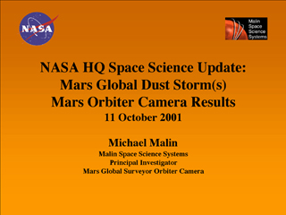 Mars Orbiter CameraSlides from NASA HeadquartersSpace Science UpdateThursday, October 11, 2001 |
