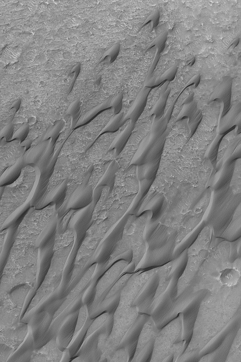 resolve into fields of sand dunes. In detail, these dunes have a grooved,