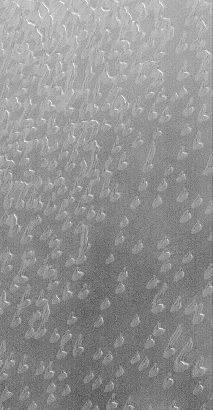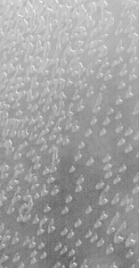surround the north polar ice cap. The dunes seen here would normally appear very dark--almost black--except when covered by frost. Why the dunes begin to frost sooner than the surrounding surfaces is a mystery: perhaps the dunes contain water