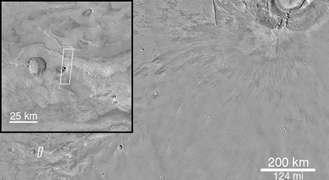 Based upon observations of Daedalia Planum from the Viking orbiters in the late 1970s, it has been assumed for 20 years that most of Daedalia Planum is a lava flow field that is mantled by bright dust. However, the similarity to the Amboy lava field in California has caused some scientists to re-think the situation on Mars. Instead of bright dust, it now appears that bright sand might be present in this portion of Daedalia Planum.