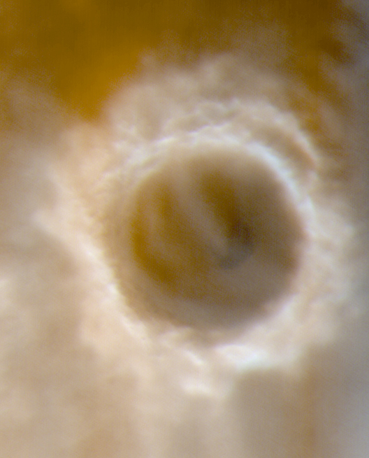 lower perimeter of the crater) and higher cloud layers (fuzzy white