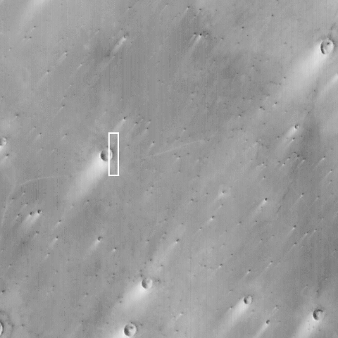 Planitia have a bright streak formed by wind transport of dust or sand.
