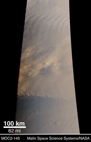 the martian plains. MOC captured this view of a storm front