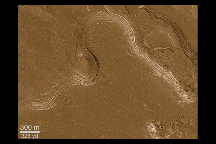 Layered martian sedimentary rock in some locations is expressed
