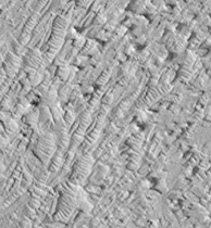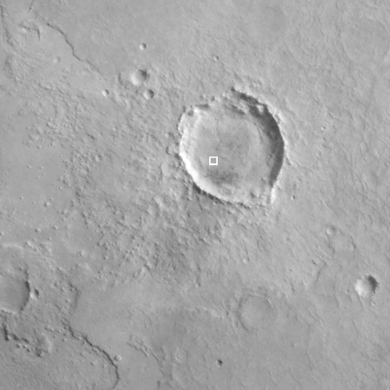 The context frame (A; Viking Orbiter 1 #369S33) is the highest-resolution image obtained of this crater prior to the Mars Global Surveyor mission. At a resolution of 224 meters/pixel, it is about 45 times lower resolution than the MOC image.